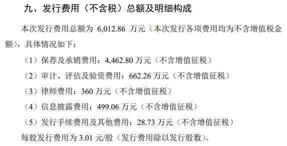 恒誉环保首次上市发行费用为6012.86万元,其中保荐机构方正证券承销保荐有限责任公司获得保荐及承销费用4462.80万元。
