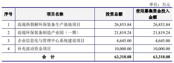 恒誉环保最终募集资金净额较原计划少1.97亿元。恒誉环保2020年7月9日发布的招股说明书显示,公司计划募集资金6.33亿元,分别用于高端热裂解环保装备生产基地项目、高端环保装备制造产业园(一期)、企业信息化与管理中心系统建设项目、补充流动资金项目。