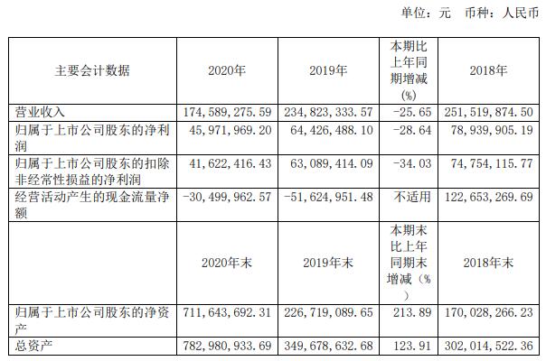 上市当年,2020年恒誉环保实现营业收入1.75亿元,同比减少25.65%;归属于上市公司股东的净利润4597.20万元,同比减少28.64%;归属于上市公司股东的扣除非经常性损益的净利润4162.24万元,同比减少34.03%;经营活动产生的现金流量净额-3050.00万元,上年同期为-5162.50万元。