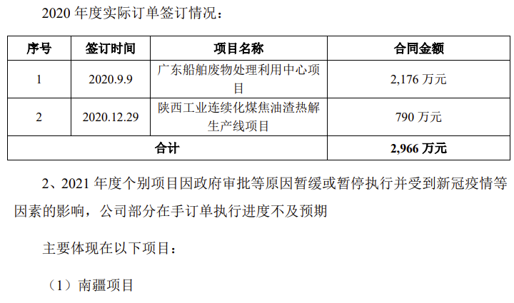 公司的主营业务为有机废弃物裂解技术研发及相关装备设计、生产与销售,是集有机废弃物裂解技术研发与裂解装备制造技术研发于一体的创新型企业。综合2020年招股说明书及2020年年报、2021年三季报来看,公司2018年营收、净利润、经营活动产生的现金流量都达到高峰,2019年就开始走下坡路了,营收、扣非归母净利润同比分别下降6.64%、15.60%,2020年。营收、扣非归母净利润同比分别下降25.65%、34.03%。2021年营业收入低于1亿元、直接亏损了。