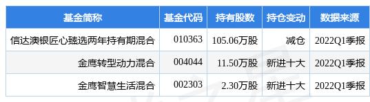 其中持有数量最多的基金为信达澳银匠心臻选两年持有期混合,目前规模为50.4亿元,最新净值1.1935(4月22日),较上一交易日下跌0.24%,近一年上涨8.36%。该基金现任基金经理为冯明远李淑彦。