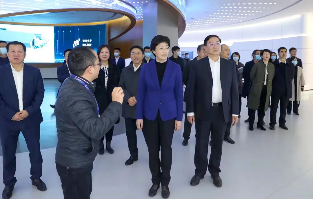 ▎2月9日下午,省委常委、市委书记施小琳,市委副书记、市长王凤朝,在市、区相关领导的陪同下,前往盟升电子总部考察调研。各位领导先后走进了盟升电子的科创成果展示中心和生产现场,了解企业立足科技创新实现高质量发展等情况。在盟升科创成果展示中心,盟升电子总经理刘荣向各位领导汇报了盟升电子发展历程、产品生产、产业规划和近年来取得的成绩,并详细阐述了盟升电子的产品用途和应用情况。领导们对盟升电子开展科技创新、推进产业“建圈强链”的发展路径表示肯定。