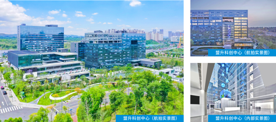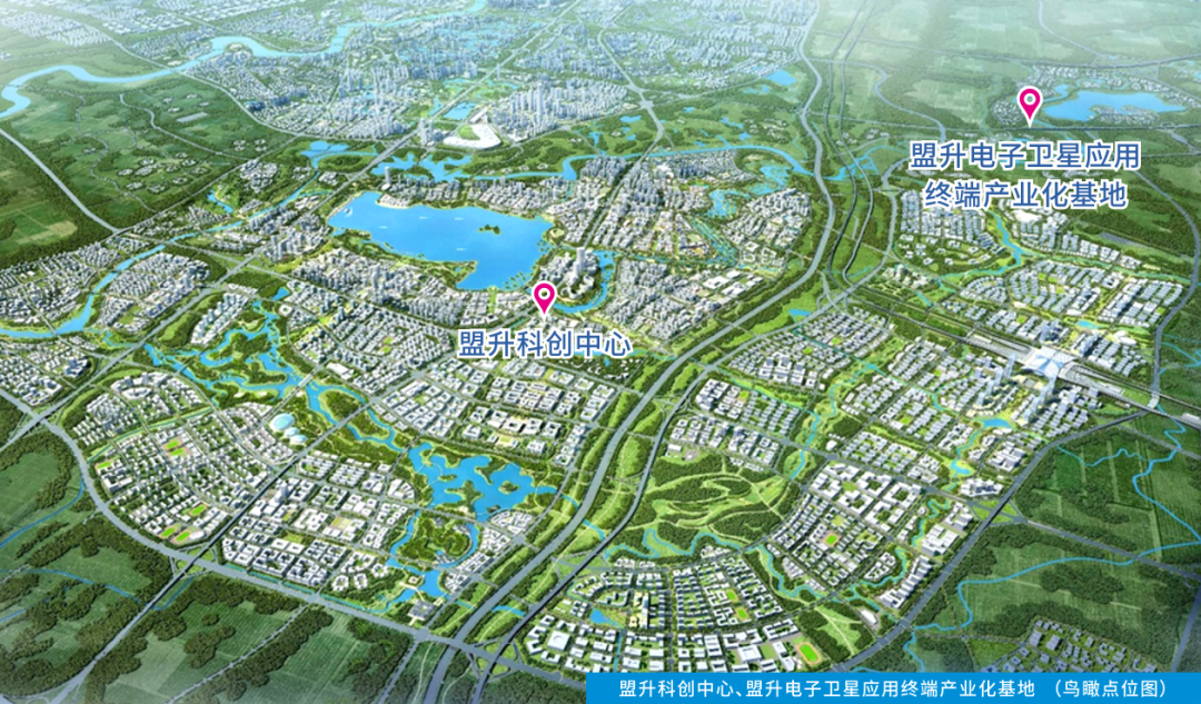 ▎盟升电子“一体两翼”发展新格局:“一体”即盟升电子总部,位于天府新区兴隆湖畔;“两翼”即科研与孵化中心——盟升科创中心、成果转化与产业化基地——盟升电子卫星应用终端产业化基地,着力打造创新策源地、产业链聚集地,为区域产业发展、“建圈强链”聚势赋能。