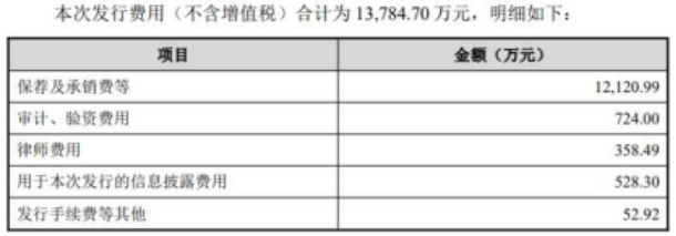 盟升电子上市发行费用为1.38亿元,其中保荐机构华泰联合证券有限责任公司获得保荐及承销费用1.21亿元。