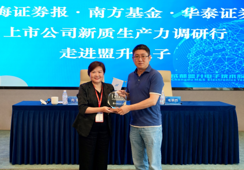 7月30日,由上海证券报联合南方基金共同举办的“上市公司新质生产力调研行”第四站走进盟升电子。南方基金、华泰证券组织70多位投资者参观盟升电子展厅、生产车间,并与公司高管进行座谈交流。