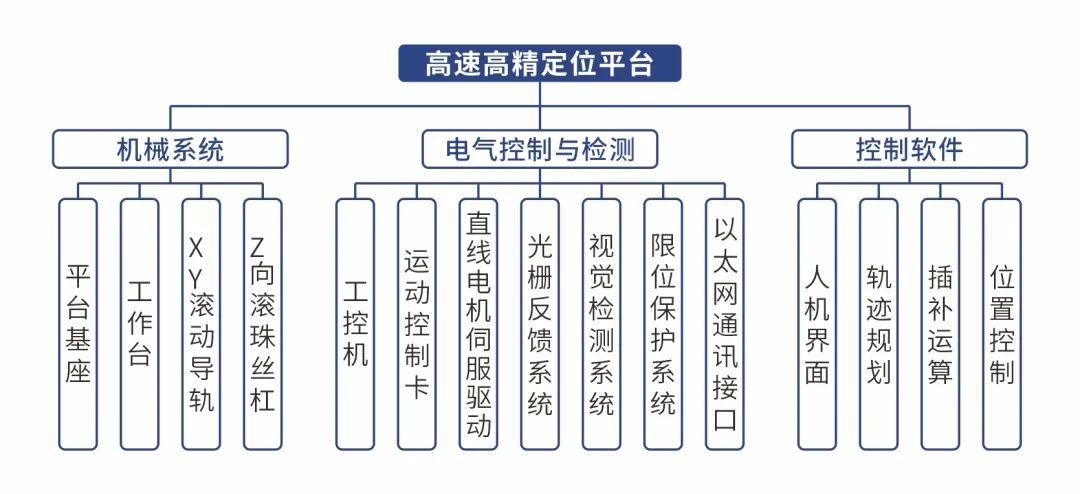 面向高端制造装备的高速精密定位平台的设计与搭建是一个系统而又复杂的工程,当中涉及到的技术覆盖了多个学科领域的研究内容如机械结构设计、机电控制、电机学、高速高精度伺服控制技术、图像处理技术及软件工程等。