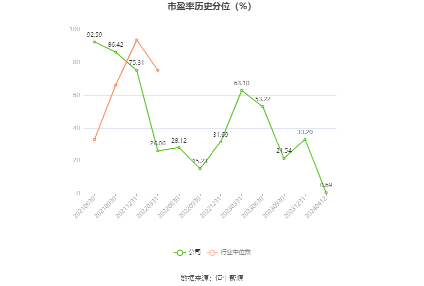 市盈率为负时,不显示当期分位数,会导致折线图中断。