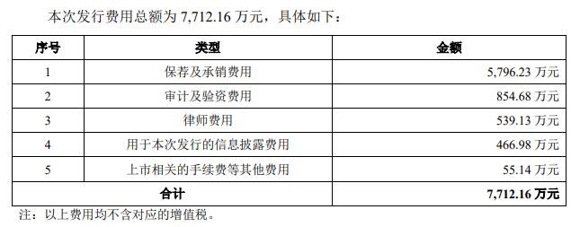 青云科技发行费用共计7712.16万元,其中,中金公司获得保荐及承销费用5796.23万元。