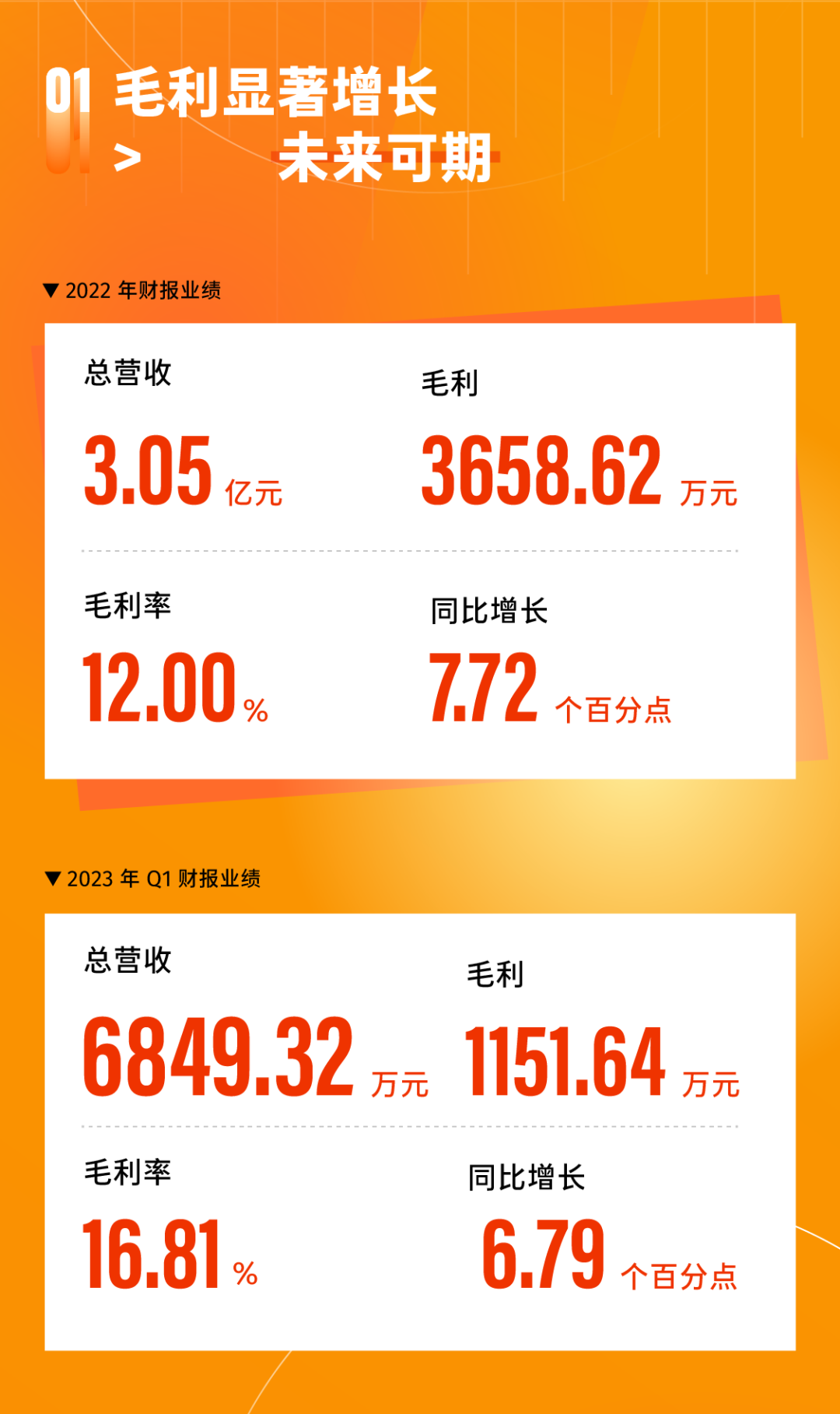 2023 年第一季度业绩报告同期发布。报告显示,2023 年第一季度,青云科技营收达 6849.32 万元,整体毛利为 1151.64 万元,同比增长 44.32%,毛利率为 16.81%,同比增长 6.79 个百分点。