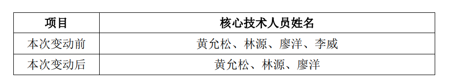 截至公告披露日,青云科技核心技术人员由黄允松、林源、廖洋、李威四人变更为黄允松、林源、廖洋三人。