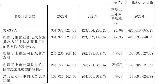 2022年,青云科技实现营业收入304,971,021.01元,同比减少28.04%;归属于上市公司股东的净利润-244,235,848.10元,上年同期-282,785,337.76元;归属于上市公司股东的扣除非经常性损益的净利润-255,777,857.85元,上年同期-295,794,352.67元;经营活动产生的现金流量净额-168,011,142.40元,上年同期-204,051,678.79元。