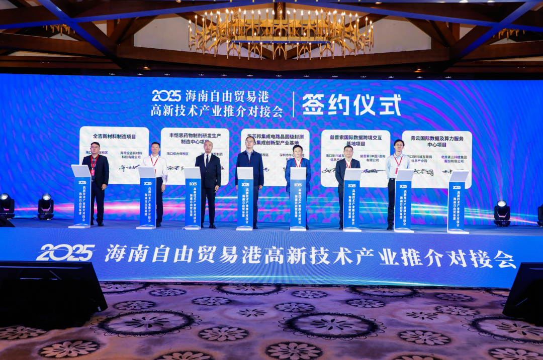 2025 年海南自由贸易港全球产业招商大会在海口盛大举行。青云科技受邀出席,并在海南自由贸易港高新技术产业推介会上,与海口复兴城互联网信息产业园成功签订国际数据及算力服务中心项目。青云将在智算领域持续扩大业务范围,以海南自由贸易港为战略支点,加速全球布局。