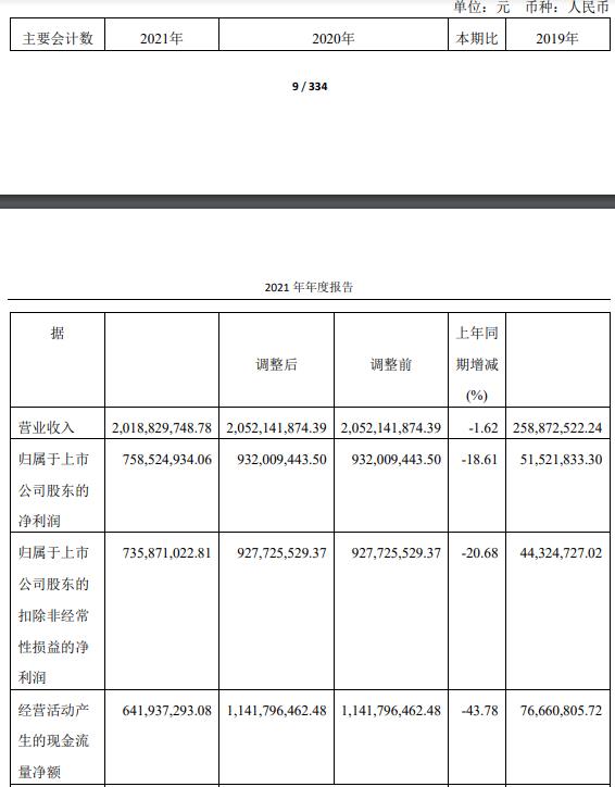 中国经济网北京4月22日讯昨晚,上海之江生物科技股份有限公司(简称“之江生物”,688317.SH)发布2021年年度报告。2021年,之江生物实现营业收入20.19亿元,同比下滑1.62%;归属于上市公司股东的净利润7.59亿元,同比下滑18.61%;归属于上市公司股东的扣除非经常性损益的净利润7.36亿元,同比下滑20.68%;经营活动产生的现金流量净额6.42亿元,同比下滑43.78%。