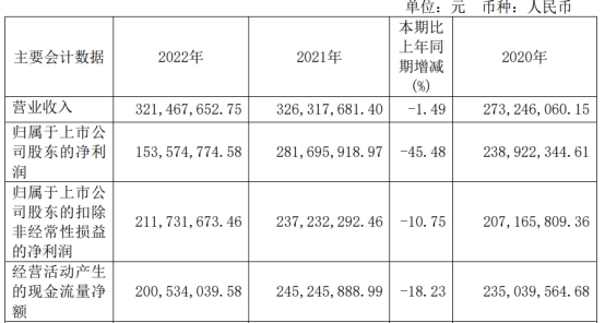 财富趋势(688318.SH)近日发布了2022年年度报告。2022年,财富趋势实现营业收入3.21亿元,同比下降1.49%;归属于上市公司股东的净利润1.54亿元,同比下降45.48%;归属于上市公司股东的扣除非经常性损益的净利润2.12亿元,同比下降10.75%;经营活动产生的现金流量净额为2.01亿元,同比下降18.23%。