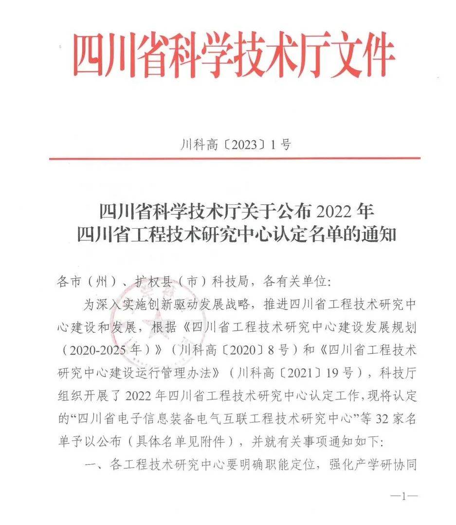 图1 2022年四川省工程技术研究中心认定文件及名单截图(部分)