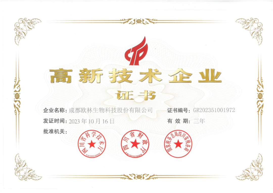 近日,全国高新技术企业认定管理工作领导小组办公室发布了《四川省认定机构2023年认定报备的第一批高新技术企业备案名单》的公告,成都欧林生物科技股份有限公司(以下简称“欧林生物”)荣列其中,再次顺利通过国家高新技术企业认定!