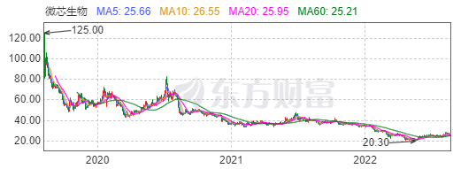 数据显示,2022年上半年公司实现营业收入2.16亿元,同比增长17.79%;归母净利润则亏损1928.83万元,亏损同比扩大169.68%。而微芯生物面临的麻烦还不止亏损翻倍,上市数年来,公司股价也已下滑超8成。