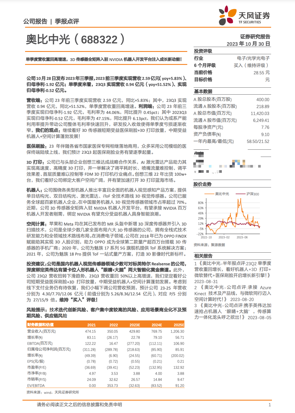 公司把握2D视觉向3D视觉跃迁的时代契机,专注3D视觉感知技术研发,在万物互联时代为智能终端打造“机器之眼”,致力于让所有终端都能更好地看懂世界。近年来,公司通过拓展客户群体、深挖下游需求和丰富产品种类等多种方式促进业务发展,公司始终关注行业内的新兴领域与产品,并积极探索其与公司技术相结合的应用场景。