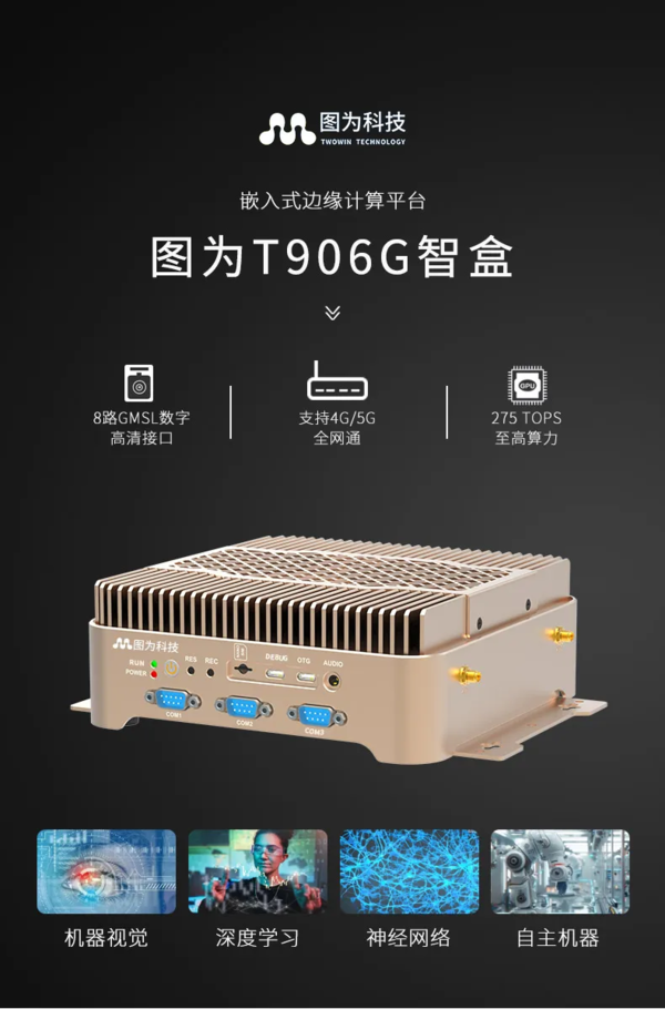 此方案“大脑”采用图为T906G边缘计算机,搭载英伟达Jetson