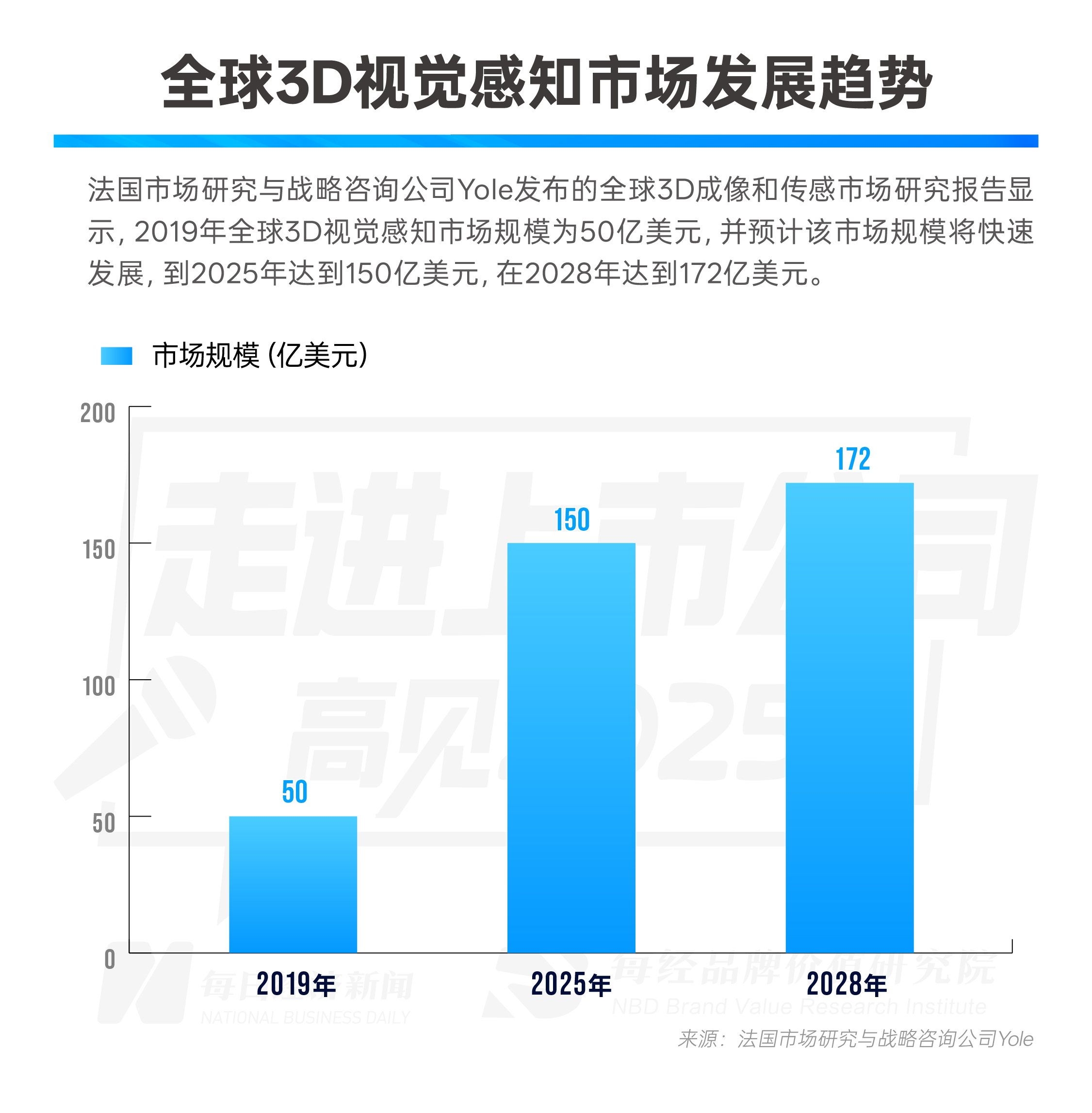 据法国市场研究与战略咨询公司Yole发布的全球3D成像和传感市场研究报告,全球3D视觉感知市场规模将快速发展,预计在2028年达到172亿美元。