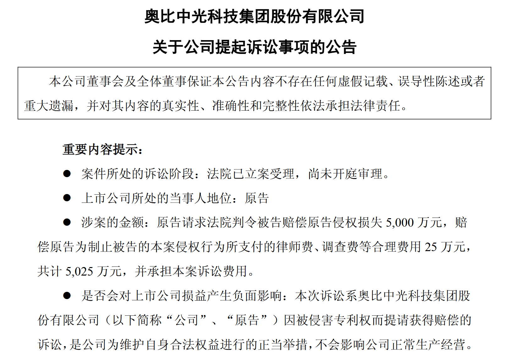 7月8日,奥比中光方面通过微信回复《每日经济新闻》记者称:“光鉴科技长期侵害奥比中光涉案专利权,我们正在通过诉讼维护自身合法权益。这既是公司维权的正当举措,也是对保护科技创新成果、共建有序市场的呼吁。”