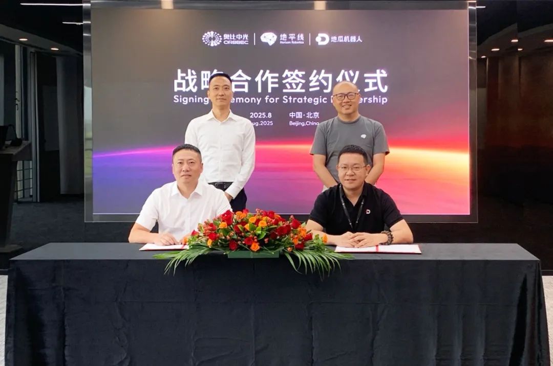 8月11日,奥比中光与地平线及其控股子公司地瓜机器人在北京签订合作协议,双方将在机器人智能化领域展开深度合作,充分发挥各自的技术与产品优势,携手推动机器人产业的技术创新与落地应用。奥比中光创始人、董事长兼CEO黄源浩与地平线创始人兼CEO余凯共同出席见证签约仪式;奥比中光机器人产品线总经理王成、地瓜机器人CEO王丛代表双方签署协议。