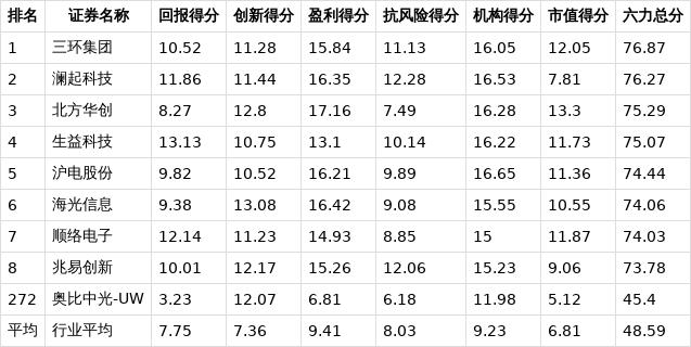 从所属行业角度来看,在申万一级电子行业的479家上市公司中,奥比中光位列行业第272位,行业平均分为48.59分。