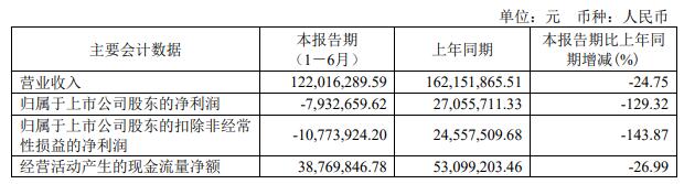 瑞华泰(688323.SH)近日发布2023年半年度报告。今年上半年,瑞华泰实现营业收入1.22亿元,同比减少24.75%;归属于上市公司股东的净利润-793.27万元,同比减少129.32%;归属于上市公司股东的扣除非经常性损益的净利润-1077.39万元,同比减少143.87%;经营活动产生的现金流量净额3876.98万元,同比减少26.99%。