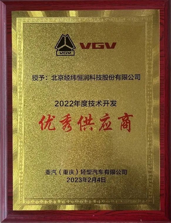 近日,以“全力迎挑战,共创新征程”为主题的中国重汽轻型汽车2023年供应商大会在重庆成功举行,经纬恒润凭借出色的技术研发实力,被授予“2022年度技术开发优秀供应商”奖项。