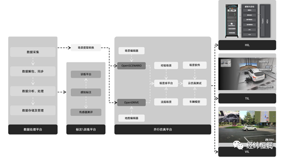 为提高智能驾驶算法开发效率,经纬恒润基于INTEWORK、ModelBase系列工具创建了智能驾驶云仿真实验室。该实验室包含云服务器、仿真引擎、车辆动力学模型等各类基础设施,并可根据实际测试需求灵活扩容,支持上千并发。实验室始建于2022年,现有工作人员12名,人员经验丰富,具备单部件以及整车级软件在环测试能力,同时结合多年测试经验积累的数万条智能驾驶场景库,提高智能驾驶测试效率。在云仿真测试结束后,对于关键工况,还提供了硬件在环测试系统,能够针对智驾域控做进一步验证。
