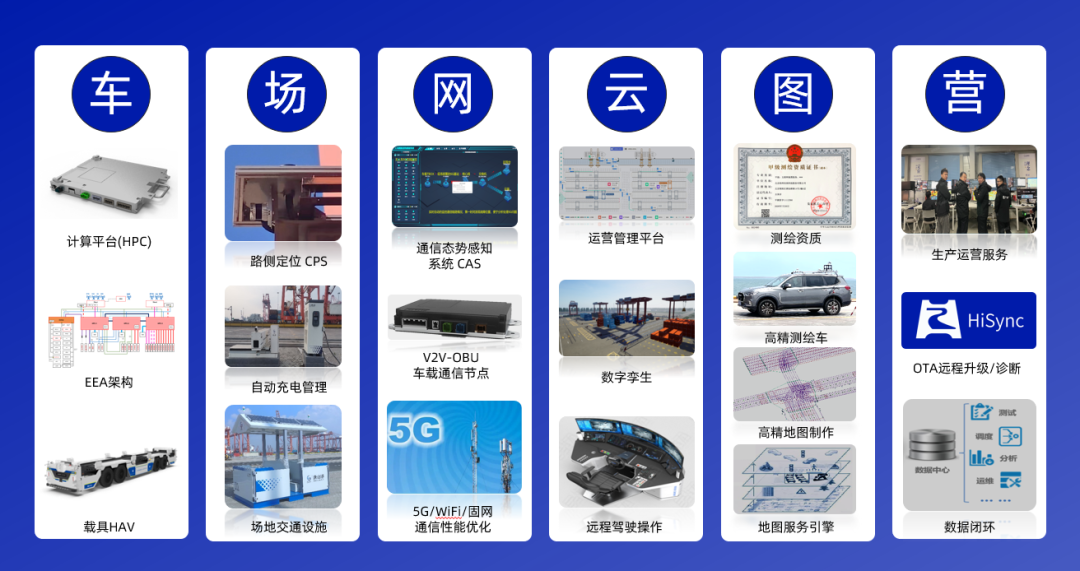 经纬恒润HAV及自研V2X车路协同、智能车队运营管理系统、车-云数据中心等共同组成的高级别智能驾驶解决方案,是当前车路网云图高效协同的自动驾驶技术示范应用场景,形成了完善的“车路云一体化”商业化运营模式。通过一体化解决方案,助力港口单位实现智能化升级,打造高度自动化、数字化、智能化的产业生态。
