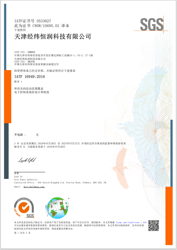 IATF16949认证是全球汽车制造业普遍认可并采纳的质量管理体系标准,不仅促进了全球汽车制造商、供应商及相关组织的紧密合作,更在提升汽车产品质量、增强安全性能及优化供应链效率方面发挥了不可替代的作用。此次认证,无疑是对经纬恒润在质量管理领域不懈努力的肯定,也为企业的市场竞争力注入了强劲动力。