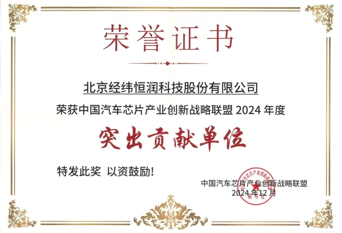 近日,中国汽车芯片联盟全体成员大会在沪圆满举办,本次大会旨在凝聚产业链上下游力量,共建我国汽车芯片产业创新生态,促进联盟成员间的深度交流与合作。经纬恒润凭借对国产芯片在汽车零部件上的验证和应用,及在建立验证准则规范方面的卓越表现,再获中国汽车芯片产业创新战略联盟2024年度“突出贡献单位”称号。