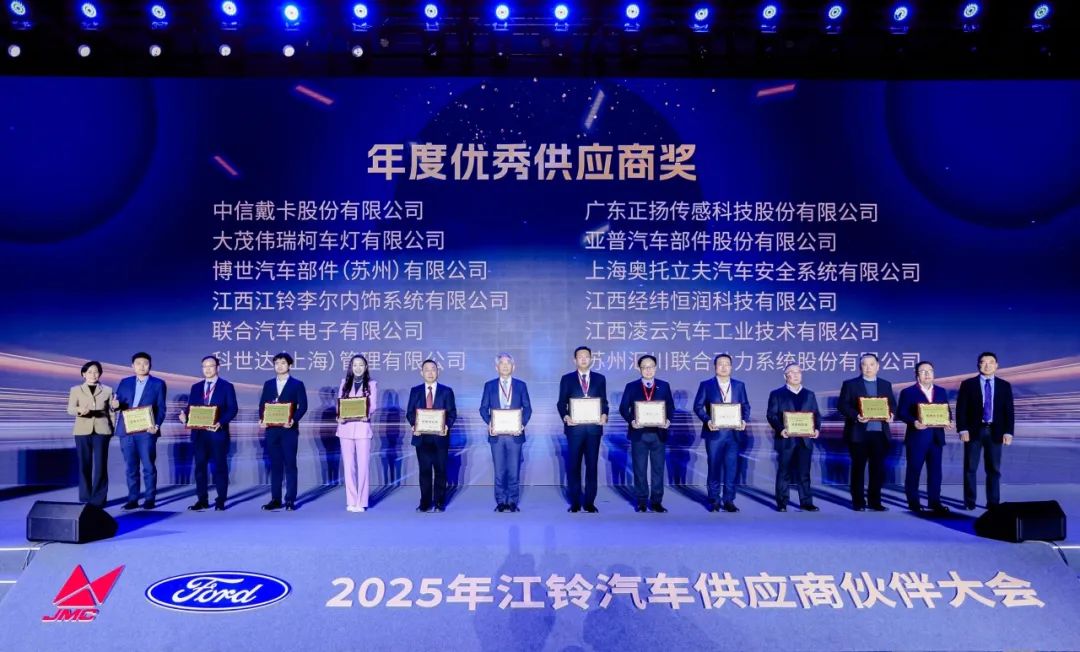 2024年是充满挑战的一年,江铃汽车在商用车行业下行压力下,取得了逆势增长的亮眼成绩——整车销量超过34万辆,出口销量突破11万辆,两项数据均创下历史新高。为表彰对江铃汽车质量和交付做出卓越贡献的供应商,1月7日,以“同心历风雨携手赴新程”为主题的2025年江铃汽车供应商伙伴大会在南昌举行。大会上,江西经纬恒润迎来高光时刻,荣膺荣获“优秀供应商”称号!