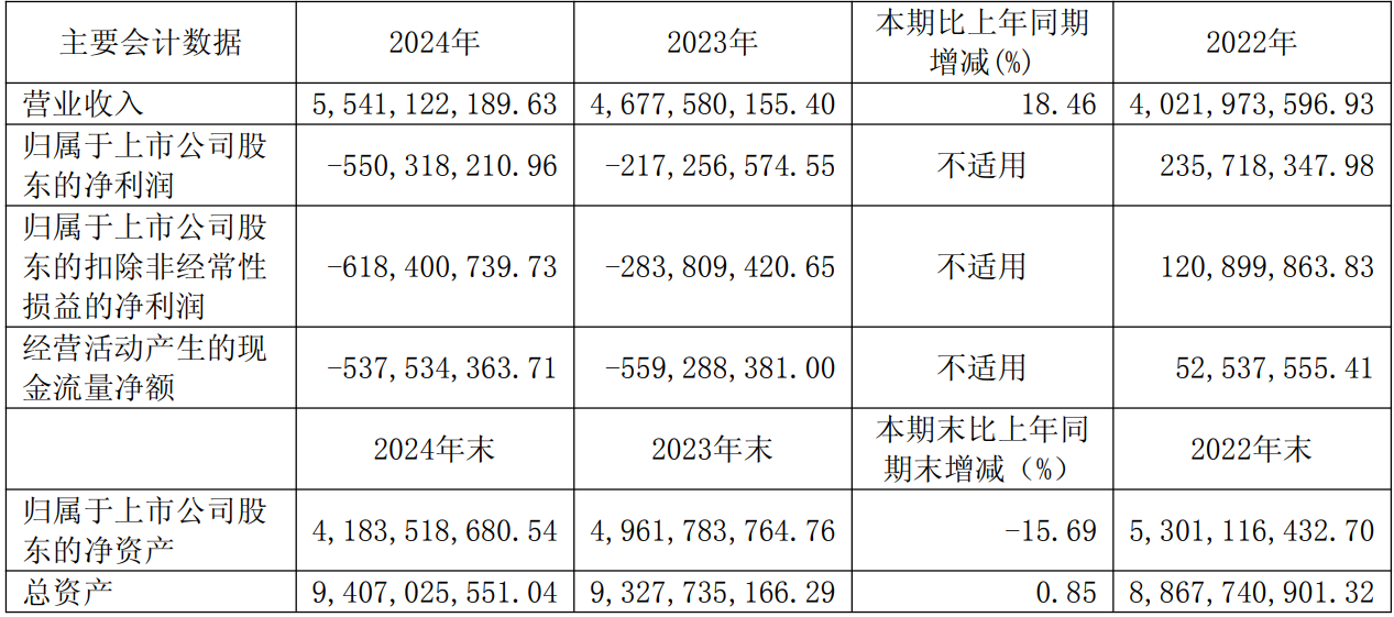 财报显示,2024年经纬恒润营业收入为55.41亿元,同比增长18.46%;归母净利润由2023年同期亏损2.17亿元,变为亏损5.50亿元,亏损额进一步扩大;扣非归母净利润为-6.18亿元,同比下降117.89%;基本每股收益为-4.78元/股。