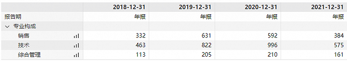 收入增长乏力,云从科技不得不对内下手。2021年,公司开始大幅裁员,员工总数从2020年底的1799人缩减至2021年底的1120人。其中,公司重点削减了研发团队,2021年底,销售、技术、管理人员分别相比上年同期减少35%、42%和23%。