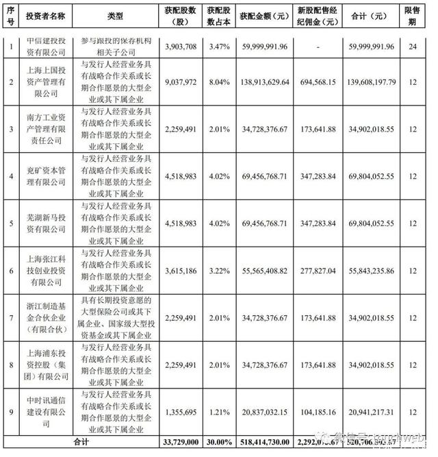 参与云从科技配售企业包括中信建投投资有限公司、上海上国投资产管理有限公司、南方工业资产管理有限责任公司、兖矿资本管理有限公司、芜湖新马投资有限公司、上海张江科技创业投资有限公司、浙江制造基金合伙企业(有限合伙)、上海浦东投资控股(集团)有限公司、中时讯通信建设有限公司。