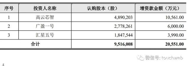 云从科技2020年5月IPO前最后一轮增资扩股信息,高云芯智、广盈一号和汇星五号以2.06亿元认缴云从科技951.6万股股份。