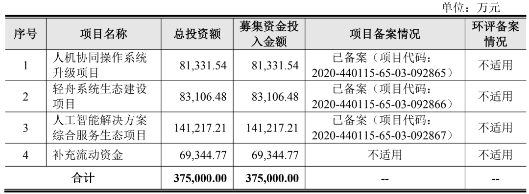 云从科技本次IPO募资将主要用于人机协同操作系统升级项目、轻舟系统生态建设项目、人工智能解决方案综合服务生态项目以及用于补充流动资金。