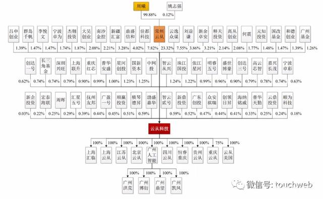 IPO前,常州云从持股为23.32%,佳都科技持股为7.82%,云逸众谋持股为7.55%,鼎盛信和持股为4.02%,刘益谦持股为3.86%;