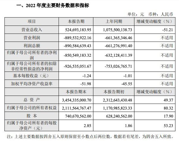 3月1日消息,云从科技集团股份有限公司发布2022年业绩快报。云从科技2022年营业总收入为5.25亿元,同比下降51.21%;归母净亏损8.51亿元,同比扩大34.65%。