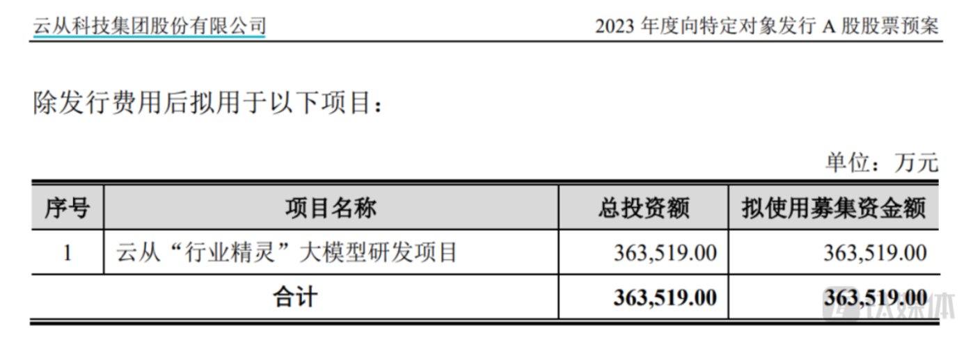 公告显示,云从科技发布2023年度向特定对象发行A股股票预案。本次拟向不超过35名发行对象发行股份不超过2.22亿股,募集资金不超过36.35亿元(含本数),扣除发行费用后拟用于云从“行业精灵”大模型研发项目。