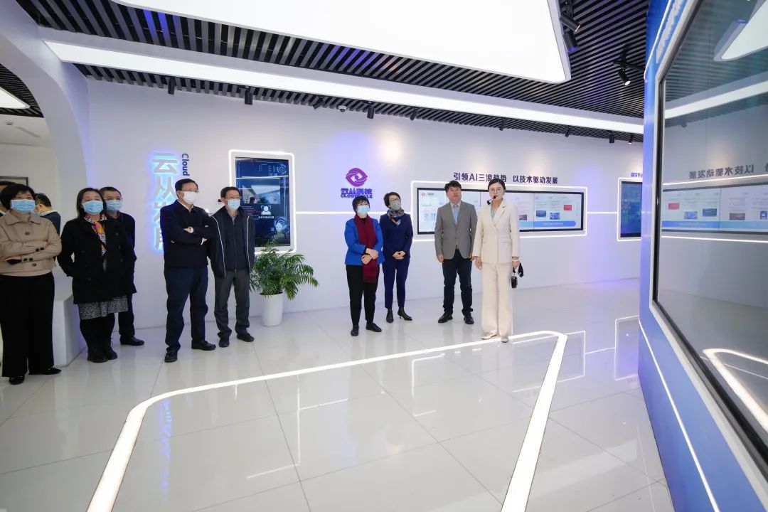 调研组一行首先参观了云从科技未来展厅。了解云从创业历史、经营情况以及在科技创新等方面的表现,听取了云从科技在科创板上市后的发展动态以及在AI大模型领域的战略布局。