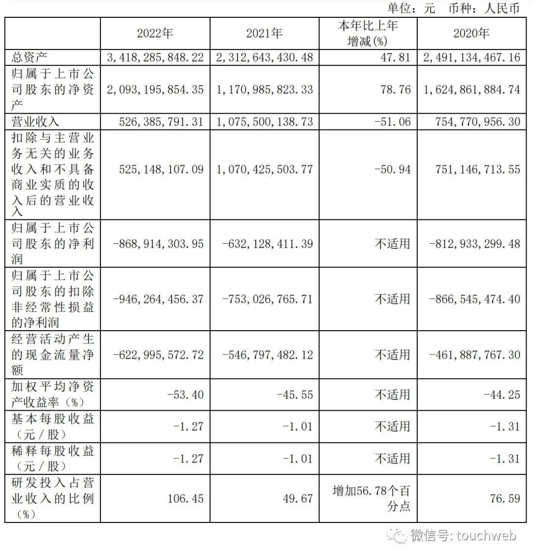 云从科技集团股份有限公司(简称:“云从科技”,公司代码:688327)日前发布财报。财报显示,云从科技2022年营收为5.26亿元,较上年同期的10.76亿元下降51.06%。