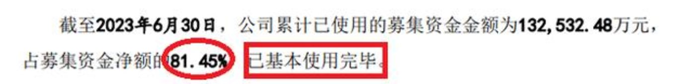 值得一提的是,公司前次募投项目资金也还没有使用完毕。截至2023年6月30日,公司16.27亿元的IPO募资净额,共使用13.25亿元,占比81%。有意思的是,公司在公告中却称,已基本使用完毕。
