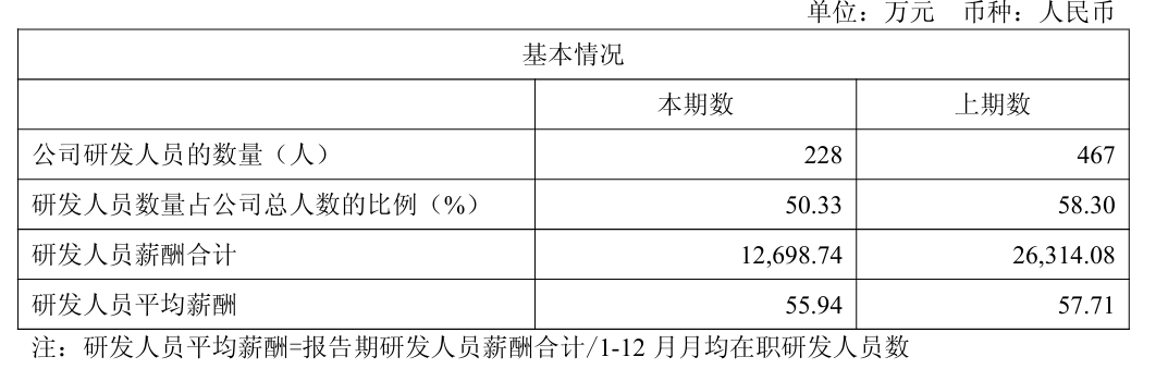 在减员过程中,尤以研发人员的减少最为突出。截至2024年12月31日,云从科技共有研发人员228人,较上期467人减少239人,减员比例高达51.18%。与之相对应的,2024年,云从科技的研发费用也降低了18.27%。