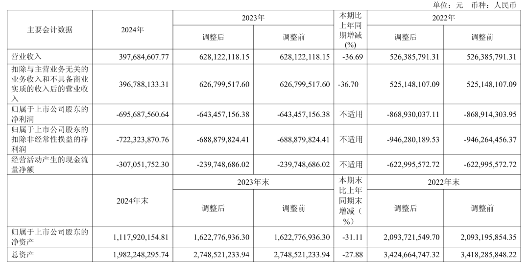 这份财报显示,2024年全年,云从科技营收约3.98亿元,同比下降36.69%;归母净利润约-6.96亿元,亏损同比扩大8.12%。