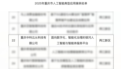 近日,重庆市经济信息委公布2025年人工智能典型应用案例名单,云从科技“面向数字化、智能化治理的银河人工智能与智能体服务平台”成功入选,标志着云从在推动区域产业智能化升级方面取得重大突破。