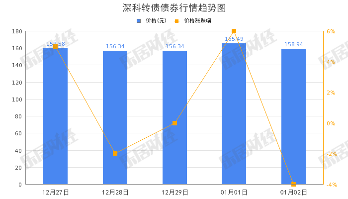 乐居财经 01月03日,“深科转债”(118017)午盘拉低,截至12:10,跌幅11.34%,报140.92元。总成交量16.11万手,成交额2.39亿元。