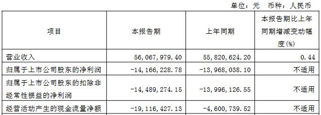 2025年1-3月,公司实现营业收入5,606.80万元,同比增长0.44%;归属于上市公司股东的净利润为-1,416.62万元,上年同期为-1,396.80万元;归属于上市公司股东的扣除非经常性损益的净利润为-1,448.93万元,上年同期为-1,399.61万元;经营活动产生的现金流量净额为-1,911.64万元,上年同期为-460.07万元。